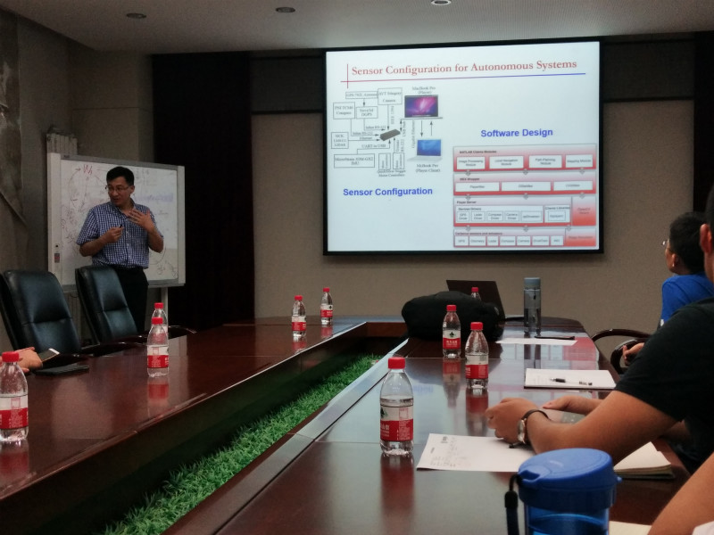 报告会上,雒超民教授详细讲解了基于生物启发和机器学习方法提出的自主移动机器人运动控制、智能控制、导航、定位、视觉和地图构建的新型算法。同时为大家介绍了多种路径规划和实时控制的新潮思路和方法,深入浅出的剖析了轮式机器人的控制架构和理念,展示了多个生动有趣的验证实验和仿真。雒教授幽默风趣的报告风格赢得了阵阵掌声,同学们纷纷表示获益匪浅。