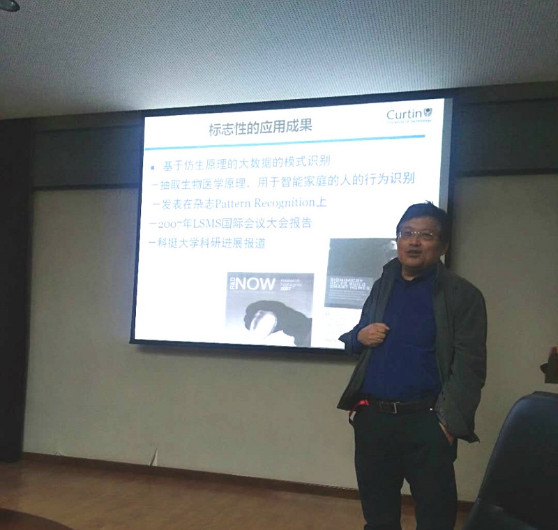 刘教授在报告中介绍了人脸识别中的眼镜影响问题,提出了可行方案来去除脸上的眼镜,具体包括一些先进的机器学习技术,支持向量机(SVM),面部检测器和深度学习,并通过一些实验结果验证了方案的有效性。报告同时介绍了科廷大学及其实验室在计算机视觉、人脸识别方面最新的研究成果。在场师生就人脸识别方向相关内容进行了深入交流与互动,现场气氛热烈,在场师生纷纷表示收获颇丰。