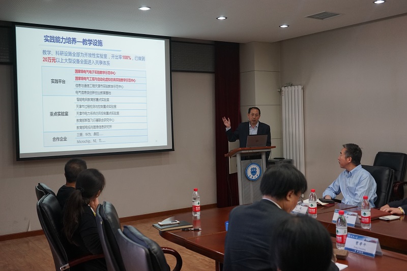 王成山院长对实验中心进行了整体性介绍,重点介绍了中心在实验教学中添加虚拟模式、开放远程访问、鼓励学生进行原创性实验设计等特色。