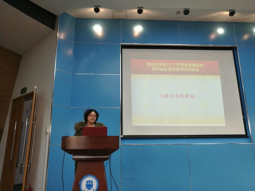 最后,院党委副书记张秀娟对学生党建工作进行指导并寄语毕业生党支部书记。首先,张秀娟肯定了党建论坛的开创性和重要性,希望以此为平台促进不同年级、不同党支部的交流分享;其次,她强调党支部书记工作的重要性,指出每一位支部书记都应加强对自己的要求,不忘初心才能更好的为人民服务,才能更好地促进个人成长和发展;第三,她强调了支委会成员分工合作的重要性,细化分工既能够为同学更好的服务,又能够为党员骨干们提供良好的锻炼平台;此外,她希望每一位学生党支部书记和党员骨干都能牢记“青年兴则国家兴,青年强则国家强”,认识到自己肩负的责任,带领每个党支部加强建设,在新的一年取得长足进步,促进爱游戏