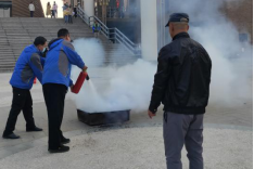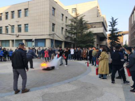 保卫处防火科科长弓保津老师为全体师生讲解消防安全、注意事项及灭火器的使用方法,在其指导下,大家积极参与,师生齐上阵,依次拿起灭火器,进行灭火演练。