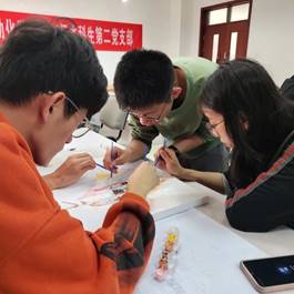 2020级本科生第一、第二党支部于26D359室进行了“妙笔丹心,共迎盛会”主题党日活动。一支支画笔拂过纸面,一段段峥嵘岁月也随之浮现眼前,执青春之笔,在绘制过程中感悟实现中华民族伟大复兴中国梦过程中的“中国精神”。