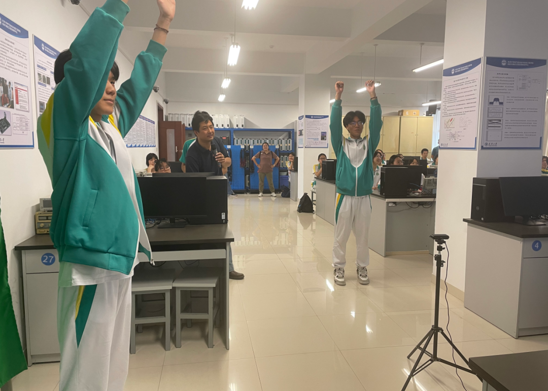 教师李根为同学们展示了智慧校园物联网平台、人工智能计算机视觉目标检测技术等科技成果,并组织同学们参与了虚拟猜拳、虚拟试衣、隔空取物、虚拟人舞蹈等人机互动项目,引导同学们充分感受信息与通信技术的魅力,激发同学们探索未知的欲望。