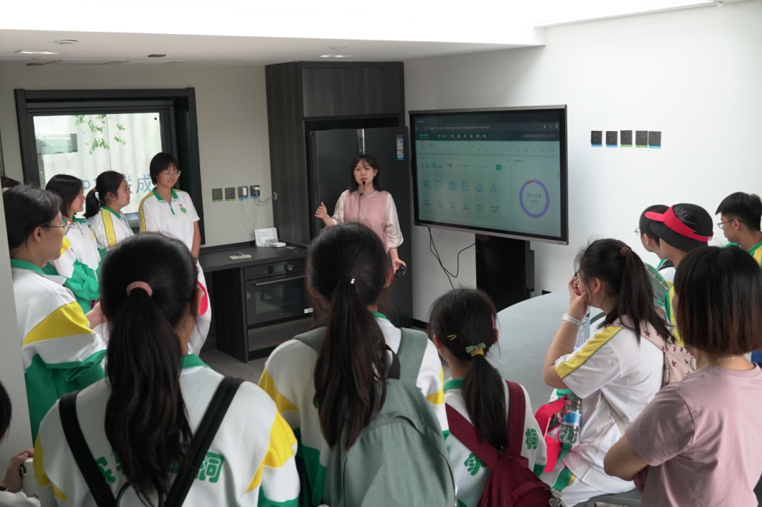 教师宋关羽与王智颖为同学们介绍了光伏供电系统、讲解了非侵入式负荷监测技术、展示了基于地源热泵的室内温度管理机制。同学们对清洁能源的应用、直流电源设备等兴趣盎然,踊跃提问。