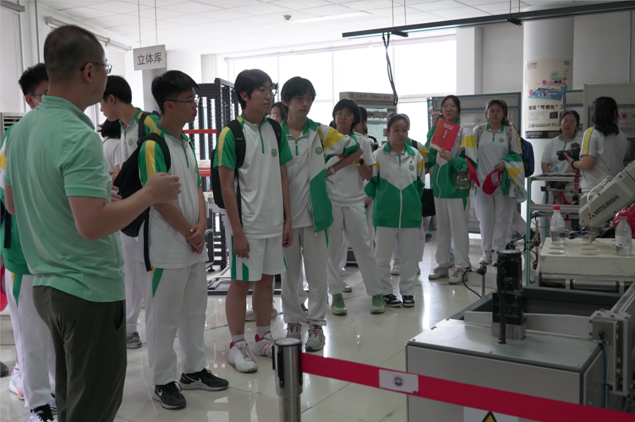 教师白瑞峰介绍了模拟啤酒酿造的自动生产线,将真实工业生产过程引入到了科普教育环节,让学生在实际生产场景中了解自动化知识,并设计了互动体验环节,让同学们亲手体验了智能工业机器人的操作过程,在零距离接触中加深对于自动化技术的理解。